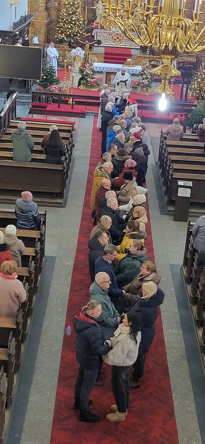 Wszyscy obecni małżonkowie mogli jeszcze raz wyznać sobie miłość i potwierdzić przyrzeczenia małżeńskie złożone w dniu zawarcia sakramentalnego małżeństwa. To już nasza parafialna tradycja, że w niedzielę Świętej Rodziny nie tylko odnawiane są przyrzeczenia małżeńskie, ale modlimy się za małżeństwa z naszej parafii, a w sposób szczególny za rodziny przeżywające kryzysy i borykające się z problemami.